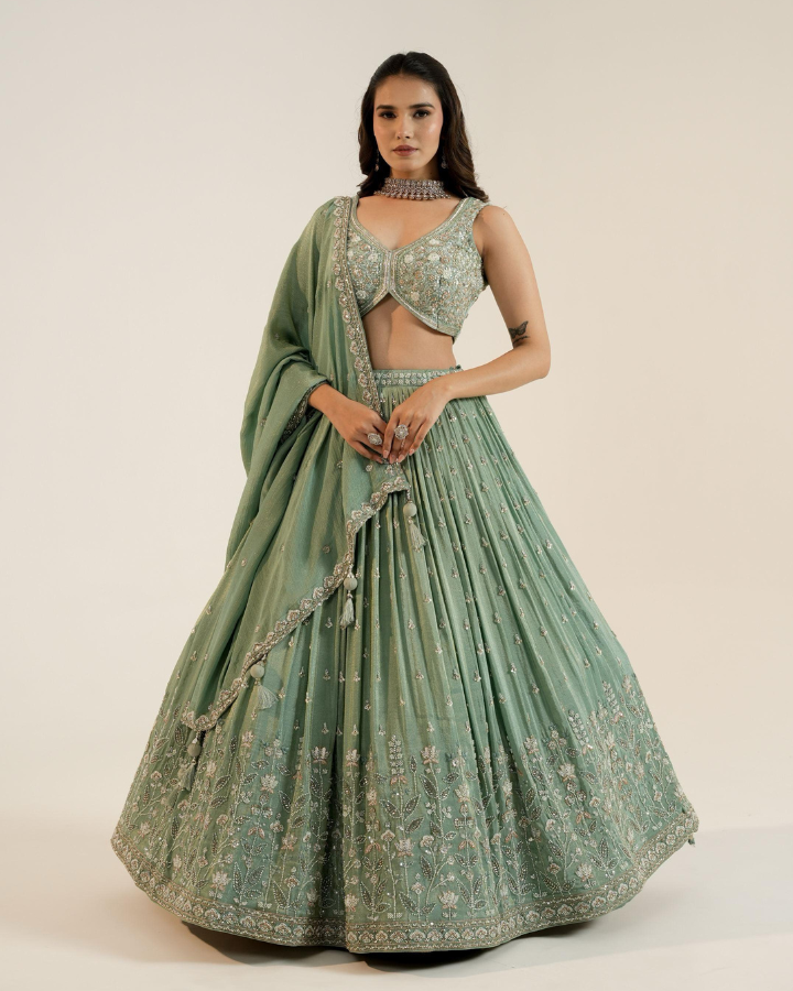 Designer Sage Green Sequin Embroidered Lehenga Choli
