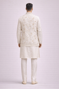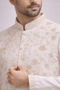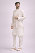 Ivory Embroidered Koti Kurta Set for Men